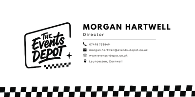 <div dir=ltr><table style=direction:ltr;border-collapse:collapse;><tr><td style=font-size:0;height:12px;line-height:0;></td></tr><tr><td><table cellpadding=0 cellspacing=0 border=0 style=width:100%; width=100%><tr><td><table cellpadding=0 cellspacing=0 style=border-collapse:collapse;line-height:1.15;><tr><td style="height:1px;width:65px;vertical-align:top;padding:.01px 1px;"><table cellpadding=0 cellspacing=0 style=border-collapse:collapse;><tr><td style="vertical-align:top;padding:.01px 1px 0.01px 0.01px;width:65px;text-align:center;"><img border=0 src=https://d36urhup7zbd7q.cloudfront.net/u/M8Da6837ryl/e2b5e0e9-213d-4df8-bd67-0af49d4cf4e7__400x401__.png height=65 width=65 alt=photo style=width:65px;vertical-align:middle;border-radius:0;height:65px;border:0;display:block;></td></tr></table></td><td valign=top style="padding:.01px 0.01px 0.01px 14px;vertical-align:top;"><table cellpadding=0 cellspacing=0 style=border-collapse:collapse;><tr><td style="line-height:1.2;padding:.01px 0.01px 14px 0.01px;border-bottom:solid 2px #000000;" nowrap><p style=margin:.1px;line-height:120%;font-size:16px;><span style=font-family:Verdana;font-size:16px;font-weight:bold;color:#212121;letter-spacing:0;white-space:nowrap;>Morgan Hartwell</span><br><span style=font-family:Verdana;font-size:13px;font-weight:bold;color:#646464;white-space:nowrap;>Director,<span> </span></span><span style=font-family:Verdana;font-size:13px;font-weight:bold;color:#646464;white-space:nowrap;>The Events Depot</span></p></td></tr><tr><td nowrap width=304 height=0 style=height:0;padding-top:14px;white-space:nowrap;width:304px;font-family:Verdana;><p style=margin:1px;line-height:99%;font-size:12px;><span style=white-space:nowrap;><img src=https://gifo.srv.wisestamp.com/s/rfem1/212121/26/trans.png style=line-height:120%;width:12px; width=12 alt=icon> <a href=tel:morgan.hartwell@events-depot.co.uk target=_blank style=font-family:Verdana;text-decoration:unset; rel="nofollow noreferrer"><span style=line-height:120%;font-family:Verdana;font-size:12px;color-scheme:only;color:#212121;white-space:nowrap;>morgan.hartwell@events-depot.co.uk</span></a></span></p></td></tr><tr><td nowrap width=384 height=0 style=height:0;padding-top:8px;white-space:nowrap;width:384px;font-family:Verdana;><p style=margin:1px;line-height:99%;font-size:12px;><span style=white-space:nowrap;><img src=https://gifo.srv.wisestamp.com/s/rfw1/212121/26/trans.png style=line-height:120%;width:12px; width=12 alt=icon> <a href=https://www.events-depot.co.uk target=_blank style=font-family:Verdana;text-decoration:unset; rel="nofollow noreferrer"><span style=line-height:120%;font-family:Verdana;font-size:12px;color-scheme:only;color:#212121;white-space:nowrap;>www.events-depot.co.uk</span></a> <img src=https://gifo.srv.wisestamp.com/s/rfa2/212121/26/trans.png style=line-height:120%;width:12px; width=12 alt=icon> <a href="https://maps.google.com/?q=Launceston, Cornwall" target=_blank style=font-family:Verdana;text-decoration:unset; rel="nofollow noreferrer"><span style=line-height:120%;font-family:Verdana;font-size:12px;color-scheme:only;color:#212121;white-space:nowrap;>Launceston, Cornwall</span></a></span></p></td></tr><tr><td nowrap width=238 height=0 style=height:0;padding-top:8px;white-space:nowrap;width:238px;font-family:Verdana;><p style=margin:1px;line-height:99%;font-size:12px;><span style=white-space:nowrap;><img src=https://gifo.srv.wisestamp.com/s/rfm1/212121/26/trans.png style=line-height:120%;width:12px; width=12 alt=icon> <a href=tel:07498753849 target=_blank style=font-family:Verdana;text-decoration:unset; rel="nofollow noreferrer"><span style=line-height:120%;font-family:Verdana;font-size:12px;color-scheme:only;color:#212121;white-space:nowrap;>07498 753849</span></a> <img src=https://gifo.srv.wisestamp.com/s/rfp2/212121/26/trans.png style=line-height:120%;width:12px; width=12 alt=icon> <a href=tel:01566501203 target=_blank style=font-family:Verdana;text-decoration:unset; rel="nofollow noreferrer"><span style=line-height:120%;font-family:Verdana;font-size:12px;color-scheme:only;color:#212121;white-space:nowrap;>01566 501203</span></a></span></p></td></tr><tr><td height=0 style="height:0;padding:14px 0.01px 0.01px 0.01px;"><table border=0 cellpadding=0 cellspacing=0><tr><td align=left style=padding-right:6px;text-align:center;padding-top:0;><p style=margin:1px;><a href=https://www.facebook.com/theeventsdepot/ target=_blank rel="nofollow noreferrer"><img width=24 height=24 src=https://gifo.srv.wisestamp.com/s/fb/3b5998/48/4/border.png style=float:left;border:none; border=0 alt=facebook /></a></p></td><td align=left style=padding-right:6px;text-align:center;padding-top:0;><p style=margin:1px;><a href=https://www.instagram.com/theeventsdepot/ target=_blank rel="nofollow noreferrer"><img width=24 height=24 src=https://gifo.srv.wisestamp.com/s/inst/E4405F/48/4/border.png style=float:left;border:none; border=0 alt=instagram /></a></p></td><td align=left style=padding-right:6px;text-align:center;padding-top:0;><p style=margin:1px;><a href=https://d36urhup7zbd7q.cloudfront.net/u/M8Da6837ryl/88eb3f2d-2a0b-4bb7-814e-bc9068d344d2__400x400__.png target=_blank rel="nofollow noreferrer"><img width=24 height=24 src=https://gifo.srv.wisestamp.com/s/ld/0077b5/48/4/border.png style=float:left;border:none; border=0 alt=linkedin /></a></p></td></tr></table></td></tr></table></td></tr></table></td></tr><tr><td height=0 style=height:0;line-height:1%;padding-top:16px;font-size:1px;></td></tr><tr><td><table cellpadding=0 cellspacing=0 width=100% style="border-collapse:collapse;width:100%;color:gray;border-top:1px solid gray;line-height:normal;"><tr><td height=0 style="height:0;padding:9px 8px 0 0;"><p style="color:#888888;text-align:left;font-size:10px;margin:1px;line-height:120%;font-family:Verdana ">IMPORTANT: The contents of this email and any attachments are confidential. They are intended for the named recipient(s) only. If you have received this email by mistake, please notify 